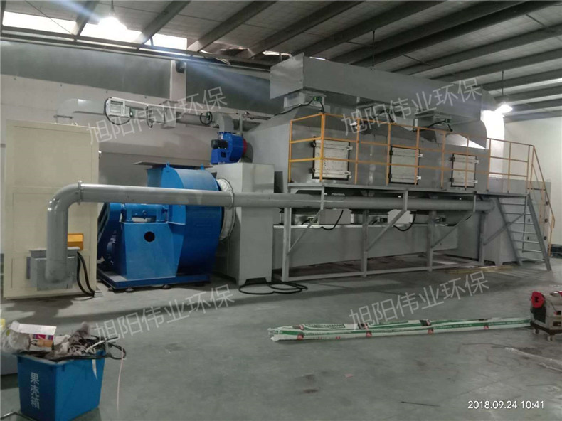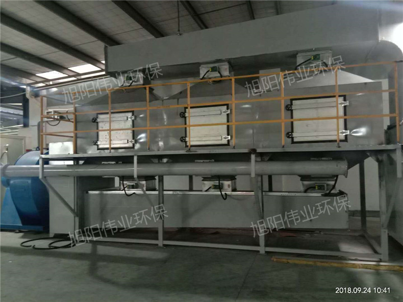 有機(jī)廢氣先通過熱交換器預(yù)熱到200~400℃,再進(jìn)入燃燒室,通過催化劑床