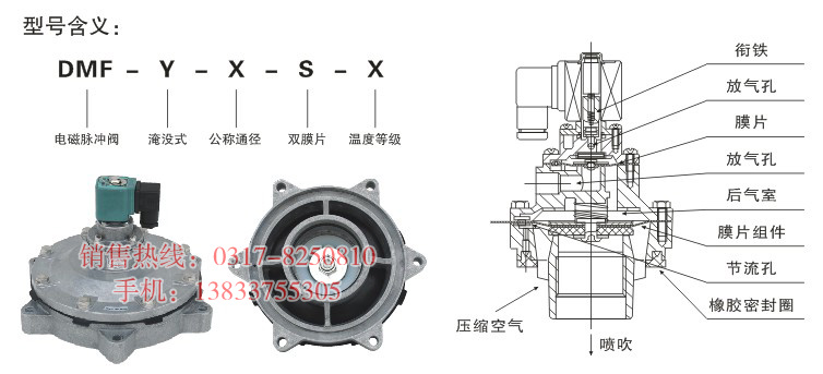 DMF-Y型電磁脈沖閥為淹沒(méi)式閥(亦稱嵌入式閥),它直接安裝在分氣箱上,具有的流通特性。壓力損失有所下降,適合于氣源壓力較低的工作場(chǎng)合。