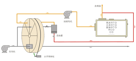 1、分子篩轉(zhuǎn)輪+RTO組合工藝特點(diǎn):