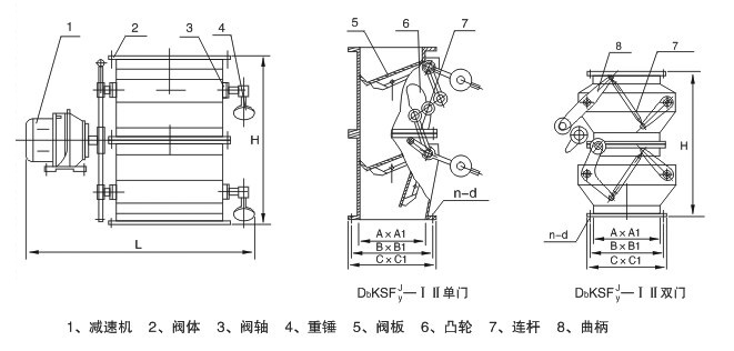 電動(dòng)卸灰閥又名鎖風(fēng)喂料機(jī),由減速器帶動(dòng)傳桿通過曲柄、凸輪及連桿分別帶動(dòng)上、下兩傳動(dòng)軸旋轉(zhuǎn),交互開啟,通過配備的杠桿系統(tǒng)或拉伸彈簧,保證閥板可靠的復(fù)位,防止野風(fēng)吹入,依確定的開閉頻率完成系統(tǒng)的給卸料。該機(jī)結(jié)構(gòu)緊湊,工作平衡可靠。廣泛適用于建材、冶金、化工、電力等行業(yè),作為各類