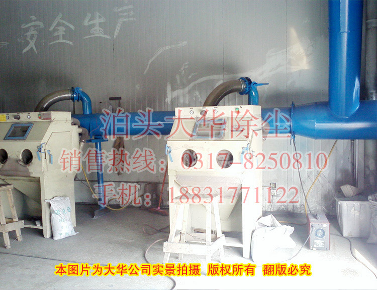 ,設(shè)計風(fēng)量為:15000m3/h,可同時連接12臺噴砂機(jī)工作,每個噴砂機(jī)上均設(shè)有均風(fēng)閥門,可實現(xiàn)單臺控制,使用更方便。