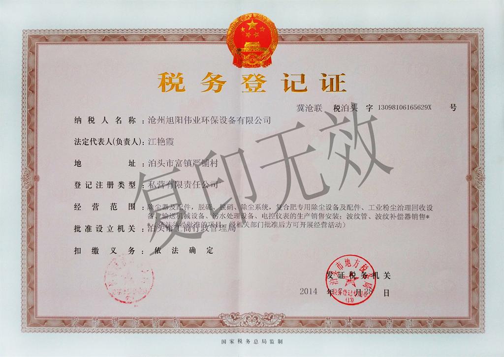 地稅證書-滄州旭陽偉業(yè)環(huán)保設備有限公司