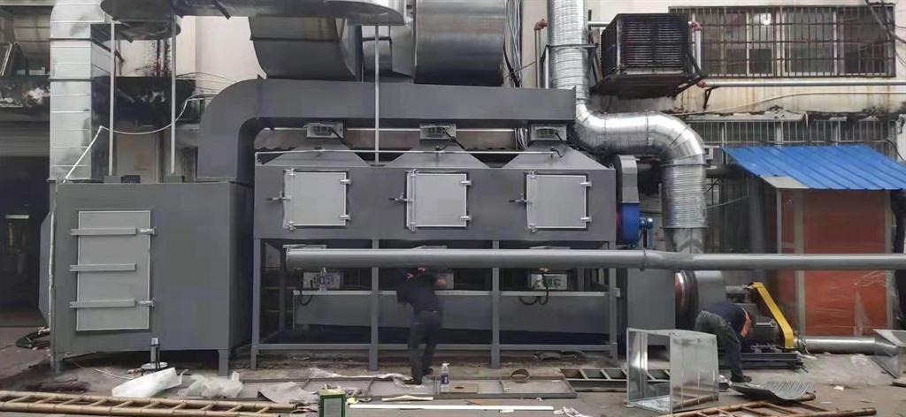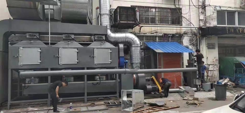 活性炭吸附濃縮催化燃燒(RCO)系統(tǒng)根據(jù)吸附(效率高)和催化燃燒(節(jié)能)兩個基本原理設計,采用雙氣路連續(xù)工作,一個催化燃燒室,兩個吸附床交替使用。先將有機廢氣用活性炭吸附,當快達到飽和時停止吸附,然后用熱氣流將有機物從活性炭上脫附下來使活性炭重生;脫附下來的有機物已濃縮(濃度較原來提高幾十倍)并送往催化燃燒室催化燃燒成二氧化碳及水蒸汽排出。當有機廢氣的濃度達到2000mg/m³以上時,有機廢氣在催化床可維持自燃,不用外加熱。燃燒后的尾氣一部分排入大氣,大部分被送往吸附床,用于活性炭重生。這樣可滿足燃燒和吸附所需的熱能,達到節(jié)能的目的。重生后的可進入下次吸附;在脫附時,凈化操作可用另一個吸附床進行,既適合于連續(xù)操作,也適合于間續(xù)操作。
